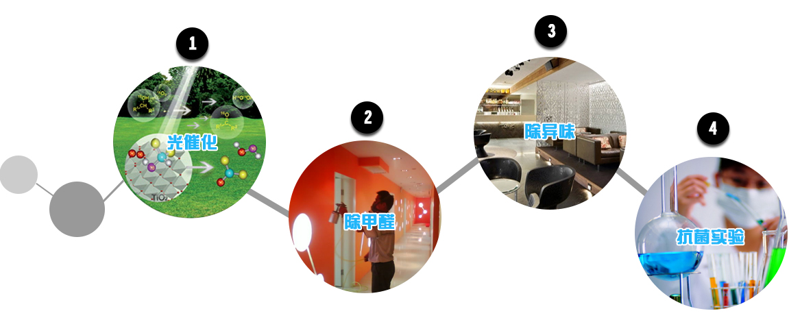 在認識【光觸媒】之前,要先了解什么是【觸媒】。觸媒是日語,翻譯成中文叫催化劑。催化劑是能在化學反應中加速反應速率,而本身在反應前后并不發生變化的物質。光觸媒是一種以納米級二氧化鈦為代表的具有光催化功能的光半導體材料的總稱。它涂布于基材表面,在光線的作用下,產生強烈催化降解功能:能有效地降解空氣中有毒有害氣體;能有效殺滅多種細菌,并能將細菌或真菌釋放出的毒素分解及無害化處理;同時還具備除臭、抗污、凈化空氣等功能。 稻田光觸媒采用【磷灰石被覆納米二氧化鈦分子結構】,具有吸附、分解、去除、無毒化的特質。表面磷灰石包覆技術不直接接觸基材表面,在充分發生氧化反應的同時對基材本身無腐蝕。其中的【磷灰石】成分,具有強大的吸附能力,可以隨時吸附空氣中的異味源、細菌、病毒等有害物質,再交由【二氧化鈦】在光源下進行分解反應,因此能夠24小時吸附、分解